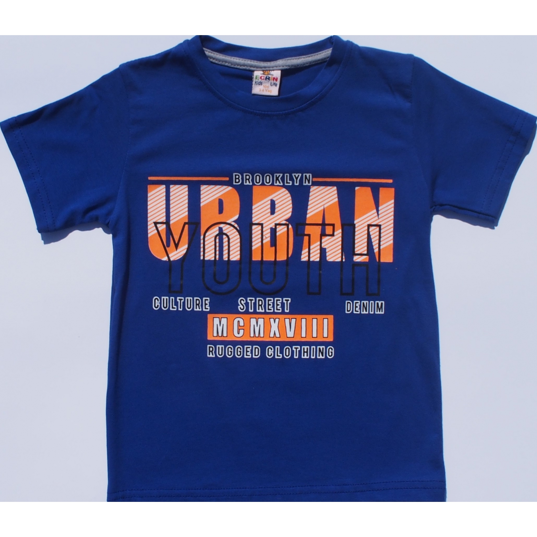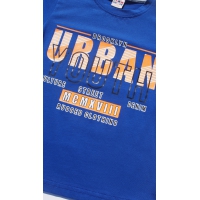 Dodaj do listyBluzka chłopięca granatowa z pomarańczowymi napisami.