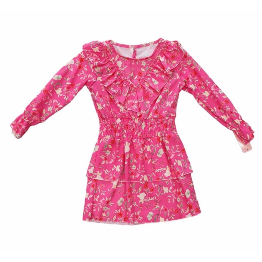 Dodaj do listySukienka zdobiona falbanką z długim rękawem w drobne kwiatuszki,